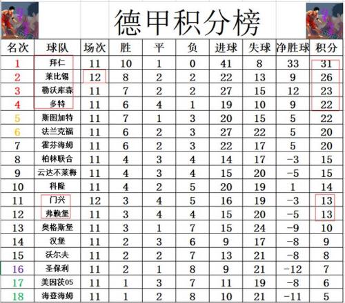 德甲最新积分战报莱比锡闷平门兴难追拜仁多赛一场落后5分
