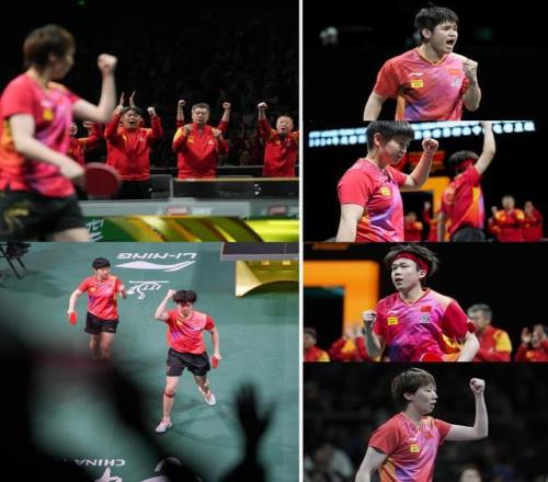 孙颖莎(上)/王曼昱(中左)/王艺迪(中右)/蒯曼。