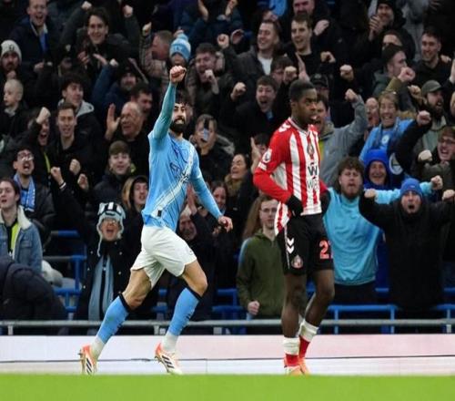 迪亚斯、格瓦迪奥尔、福登各入一球,曼城以3比0的比分战胜桑德兰,将与阿森纳的积分差距缩小为2分。