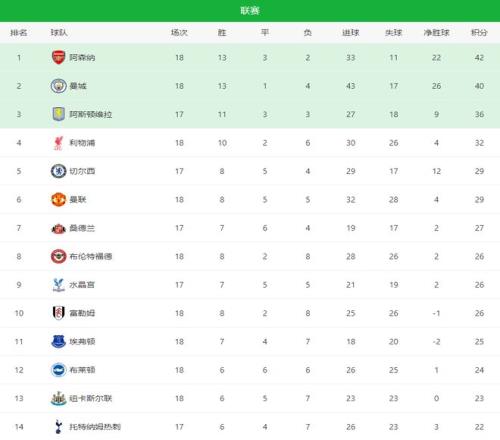 随着阿森纳21+曼城21!英超最新积分榜:利物浦险胜维尔茨首球_24直播网