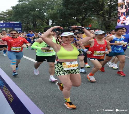“大湾鸡”亮相2025黄埔马拉松赛。