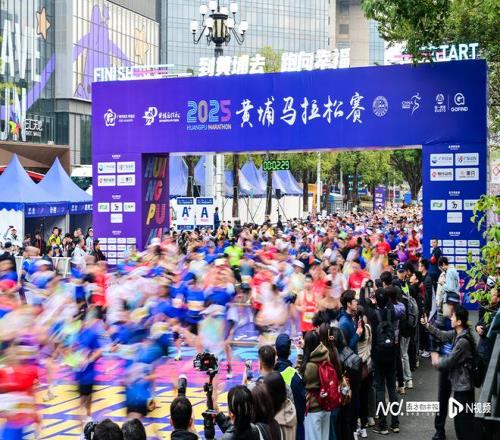 2025黄埔马拉松赛在科学城绿轴广场鸣枪开跑。