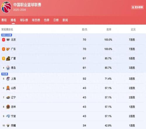 首先看到了在最近结束的常规赛中,广东男篮打败山西男篮实现了复仇,也获得了七连胜。这也让他们的球队再度从之前的五名开外来到了前两名,整体的表现非常出色。除此之外,北京男篮同样也是七连胜,保持着榜首的位置。从目前来看,广东男篮和北京男篮是整个联盟当中的两支球队取得七连胜的。从这一点也证明北京队和广东队已经和其他球队逐渐拉开差距,他们的实力和其他的球队确实是有些区别的。