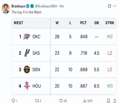 火箭队经历这一波三连胜后战绩20胜10负反超湖人升至西部第四的位置,火箭与掘金的胜场只差1个,距离西部第二的马刺也只差2个胜场。