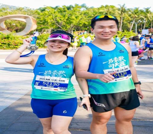 本届三亚马拉松的参赛体验也在持续升级。赛前,担任赛事加油官的刘畊宏带领全场选手完成三轮热身操,更亲身上阵跑完半马,带动参赛选手奔跑热情。更具创新的是,赛事基于区块链技术,首次限量发行3万枚专属数字奖牌,凭借唯一编号具备不可复制的专属收藏价值,为跑者留下独特参赛印记。