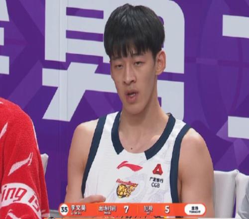 作为此前没什么表现机会的年轻后卫,李文昊也临危受命,获得了机会。尽管只打了7分钟就5犯离场,但李文昊的防守还是拼尽全力,在第三节比赛多次送出不错的防守表现,还曾面对面封盖了北控男篮的外援里勒,赢得了全队的称赞。