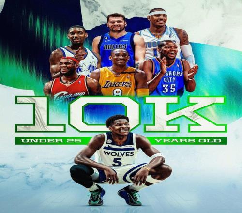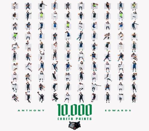需要关注的是,爱德华兹在此役还创下了3大神迹。第1、得到本场第23分之际,爱德华兹NBA生涯常规赛总得分突破10000大关。爱德华兹(24岁零157天)超越科比布莱恩特(24岁零194天)成为NBA史上第三年轻的万分先生,仅次于勒布朗詹姆斯(23岁零59天)和凯文杜兰特(24岁零33天)。