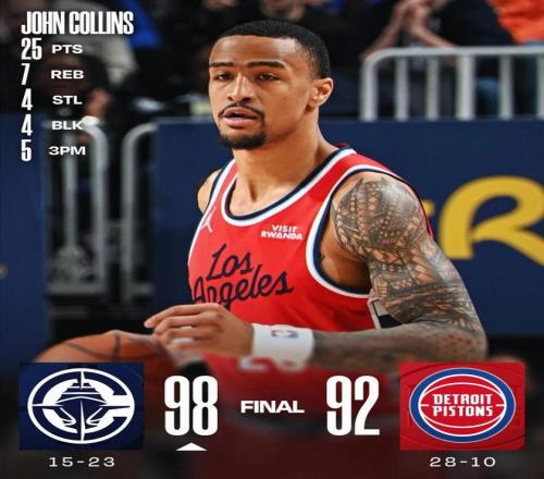赛季至今,快船的整体表现还没有达到期待,但科林斯对于球队绝对是正作用: